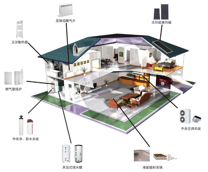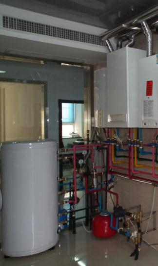 ROCA洛卡生活家(南京洛卡揚子江科技發(fā)展有限公司)結(jié)合技術(shù)培訓、技術(shù)科研、公司供暖使用設(shè)計安裝了一套供暖和熱水集成系統(tǒng)。融合了目前市場上主流的 冷暖舒適家居系統(tǒng)要求和典型的系統(tǒng)方案,體現(xiàn)出我公司雄厚的技術(shù)力量和供暖行業(yè)領(lǐng)導(dǎo)地位。該系統(tǒng)包括:9臺各種型號燃氣壁掛爐(其中2臺冷凝式鍋爐,每臺 都可以獨立工作),雙盤管儲水包配合太陽能、壁掛爐供熱水系統(tǒng),單盤管儲水包配合壁掛爐容積式供熱水系統(tǒng),去耦罐分壓系統(tǒng),地暖混水及溫控系統(tǒng),中央空調(diào) 并用系統(tǒng),生活熱水循環(huán)系統(tǒng),中央凈水、軟水和終端凈水裝置,電話遠程控制裝置等,同時設(shè)置了8個溫度點和進水流量計做為監(jiān)測和技術(shù)科研,方便教學和理論 研究。